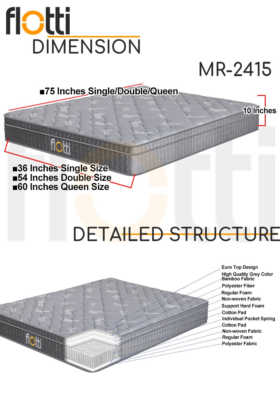 Flotti Orthopedic Bamboo Fabric 10 Inch Euro-Top Firm Pocket Spring Mattress (Single, Double, Queen)