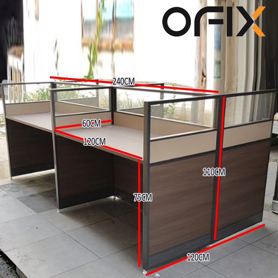 Ofix WS-100 4-Seater Workstation Table Partition Cubicle (White)